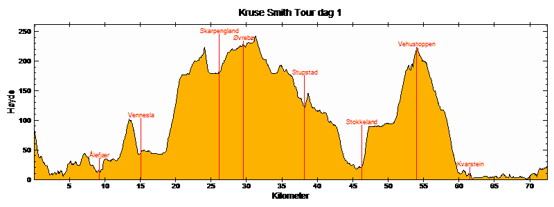 Dette er en krevende løype med et par tunge, lange bakker og kupert terreng mot slutten. De eneste flate strekningene man kan regne med å holde god fart er opp Torridalsveien langs Otra og over heia fra Øvrebø til Engeland.