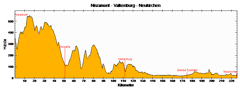 | Valkenburg | 111,9 km | 113,7 km | 60,8 km | 65 | 645 | 685 | |
