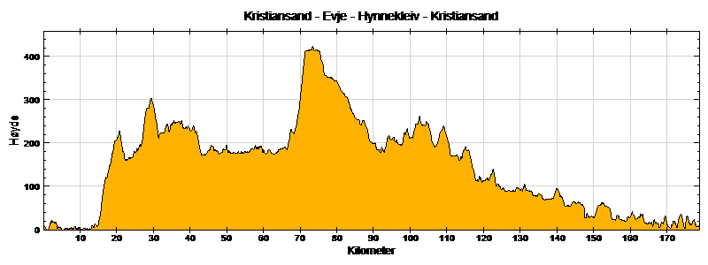 Ruten ble brukt som treningstur for CK Sør foran Color Line Tour 2005. Turen går fra Kristiansand til Kvarstein langs Torridalsveien, og deretter langs riksvei 9 til Evje. Ved Evje tar man av på riksvei 42 mot Arendal, og holder seg her til Hynnekleiv. Herfra følger man riksvei 41 forbi Herefoss og Birkeland til E-18, og resten av turen tilbake går på sykkelstien.