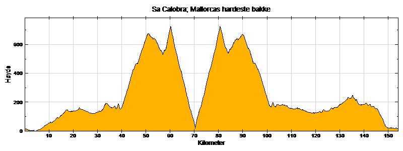 Det finnes to veier til Sa Calobra -- fra sør eller fra nord. Kommer man fra sør må man forbi Puig Major, og det er en ekstra, ti kilometer lang bakke som man ikke alltid ønsker. Kommer man fra nord, slipper man den bakken. Utover det er det ingen bakker å unngå, og på denne turen er de lange. Denne løypen kommer til Sa Calobra fra nord.