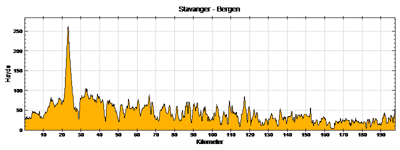 Snakker om Halhjem, så er dette siste pust i bakken før den eneste nevneverdige bakken på turen, nemlig klatringen over Fanafjell (den skarpe spissen til høyre i høydeprofilen).