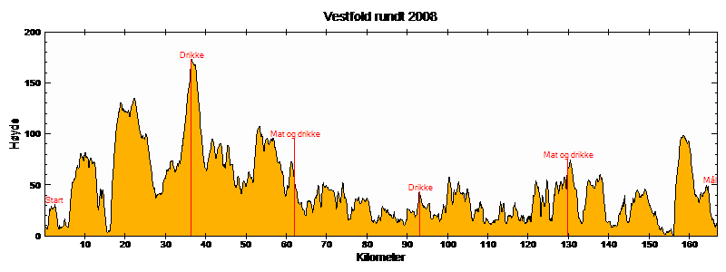 Terrenget er varierende hele tiden. Den tøffeste bakken kommer allerede opp fra Holmestrand, men de fleste opplever likevel de siste 6 milene fra Larvik som den tyngste biten.