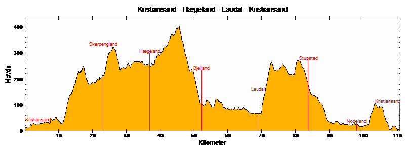 | Hægeland | 36,8 km | 74,1 km | 13,7 km | 253 | 171 | 130 | |