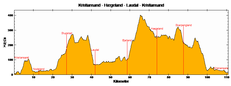 | Hægeland | 36,8 km | 74,1 km | 13,7 km | 253 | 171 | 130 | |
