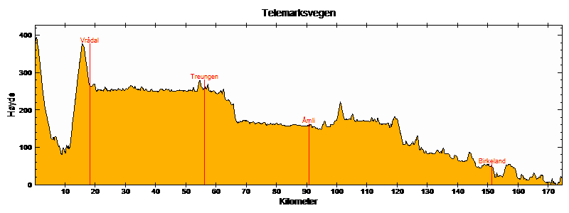 | Treungen | 56,3 km | 118,3 km | 38,0 km | 262 | 74 | 81 | |