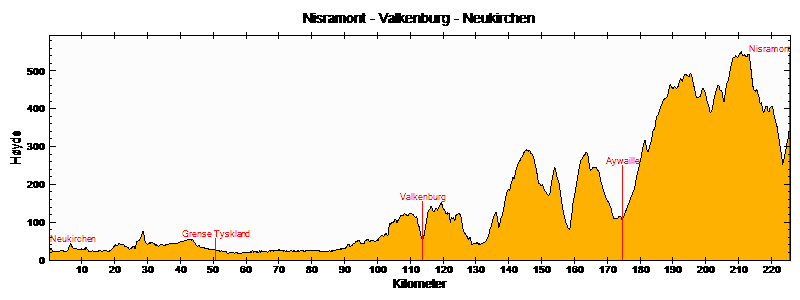 | Valkenburg | 111,9 km | 113,7 km | 60,8 km | 65 | 645 | 685 | |