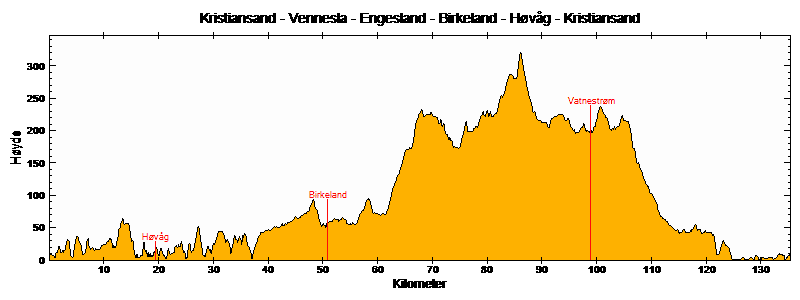 Kristiansand - Vennesla - Engesland - Birkeland - Høvåg - Kristiansand