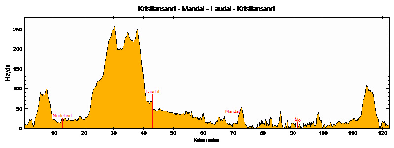 | Mandal | 52,4 km | 69,8 km | 21,8 km | 7 | 213 | 206 | |