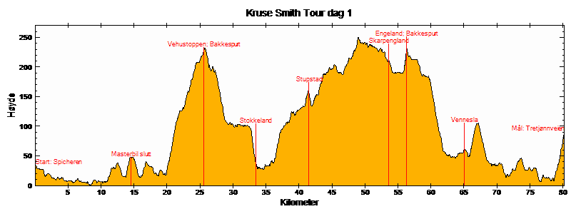 | Mål: Tretjønnveien | 80,2 km | 0,0 km | 15,1 km | 91 | 170 | 140 |