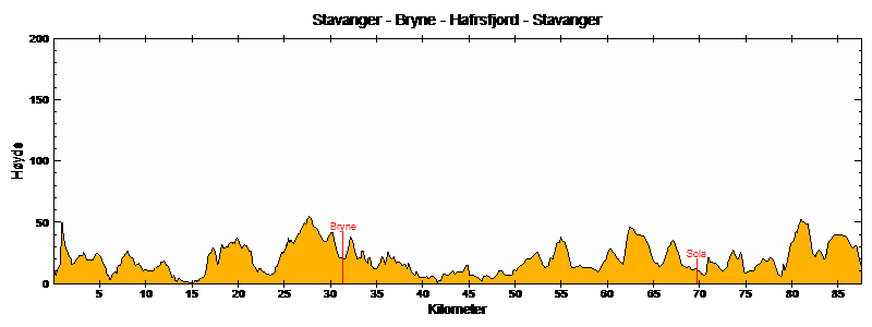 Fra starten ved jernbanestasjonen i Stavanger følger man rv 44 sydover mot Sandnes og deretter Bryne. Etter Bryne tar man til høyre på rv 507 mot Orre ut mot kysten. Denne veien følger man rv 510 og rv 509 tilbake til Stavanger.